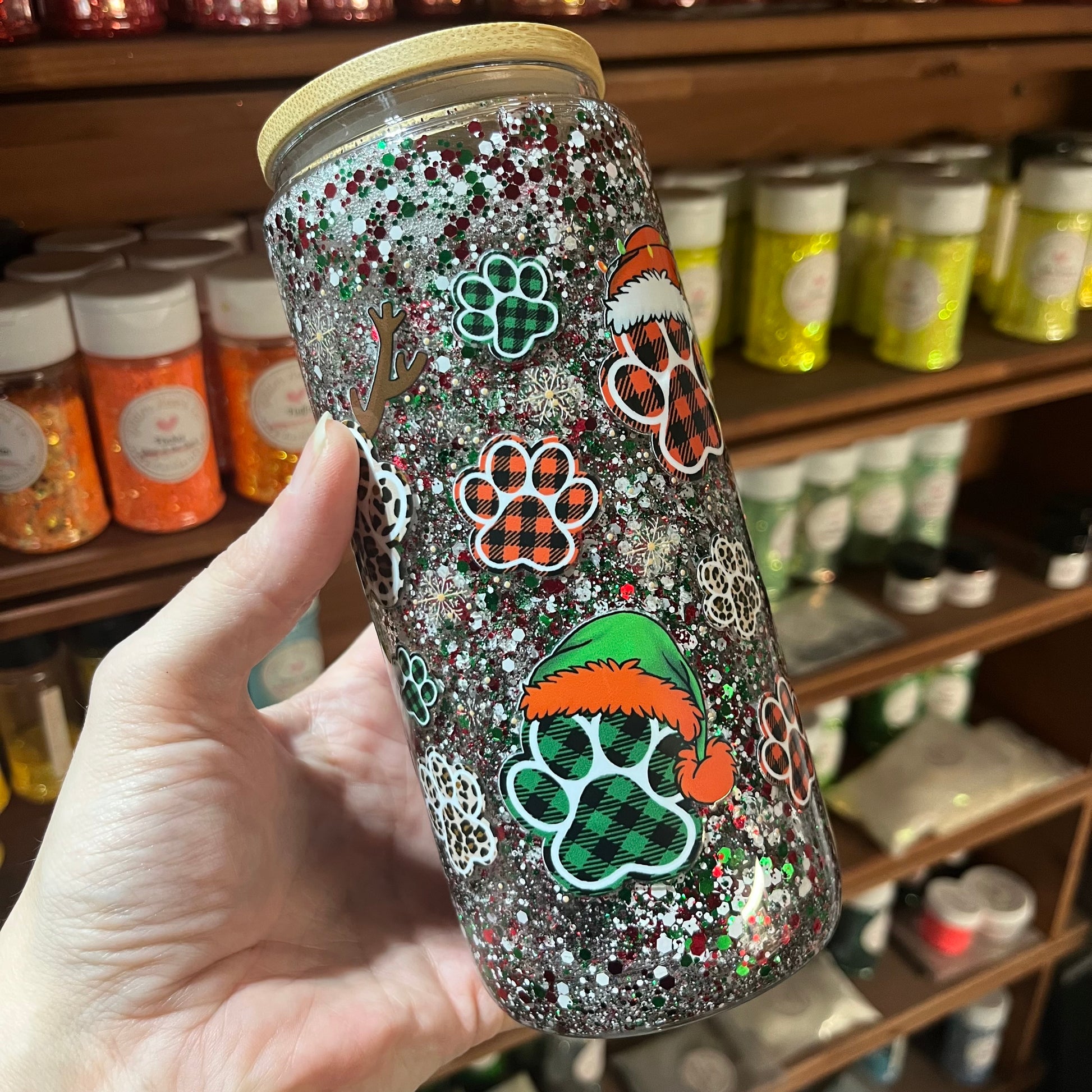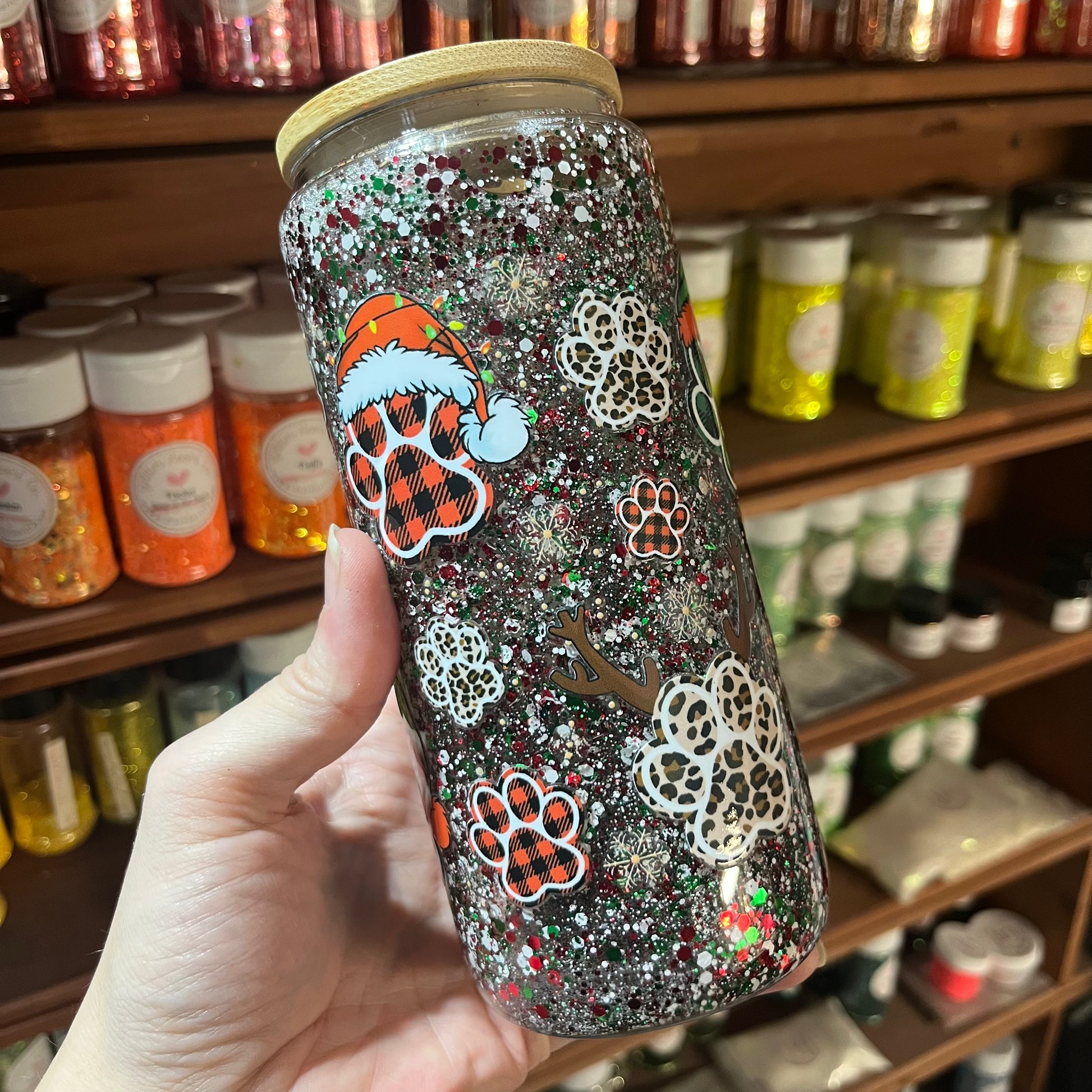 This 16oz Snowglobe Tumbler is the perfect mix of festive, sparkly, and absolutely adorable for any pet parent or animal lover. Packed with swirling Christmas glitter and decorated with plaid paw prints, snowflakes, reindeer antlers, and cozy holiday hats, this tumbler brings a fun, heartwarming holiday vibe to every sip.